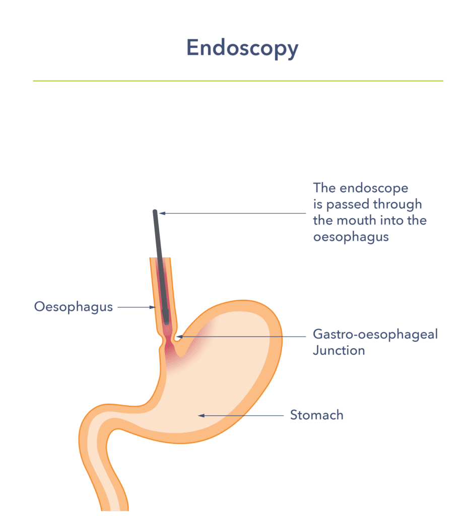 Doctors diagnose Barrett’s oesophagus by looking at the oesophageal lining. They use a procedure called endoscopy. This is a test done by a doctor or clinical endoscopist (usually a specialist nurse). They use a small tube (the width of a small finger) with a camera on the end. They insert it into the oesophagus and stomach via the mouth. Local anaesthetic spray and sedation can be used to make the procedure more comfortable.