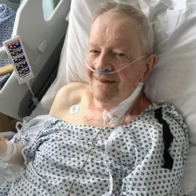 In 2015, Ross’ auntie was diagnosed with stomach cancer and sadly passed away in 2017. His mum was also checked for CDH1 (the stomach cancer gene) and was diagnosed with stomach cancer. She received chemotherapy and surgery to remove her stomach (a gastrectomy). After tests, Ross, and some of his other family members, found out that they also carried the CHD1 gene. In 2018, Ross had a gastrectomy. When he received the pathology results from his removed stomach, 64 pre-cancerous cells had been found.