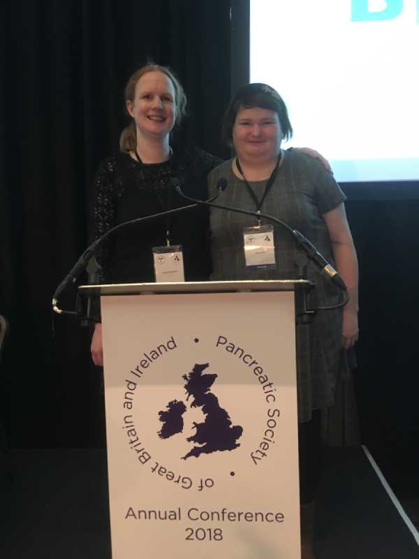Kirsty Donaldson and Amy Lucas speaking about their experiences of pancreatitis at the Pancreatic Society of Great Britain and Northern Ireland Annual Conference in November 2018.