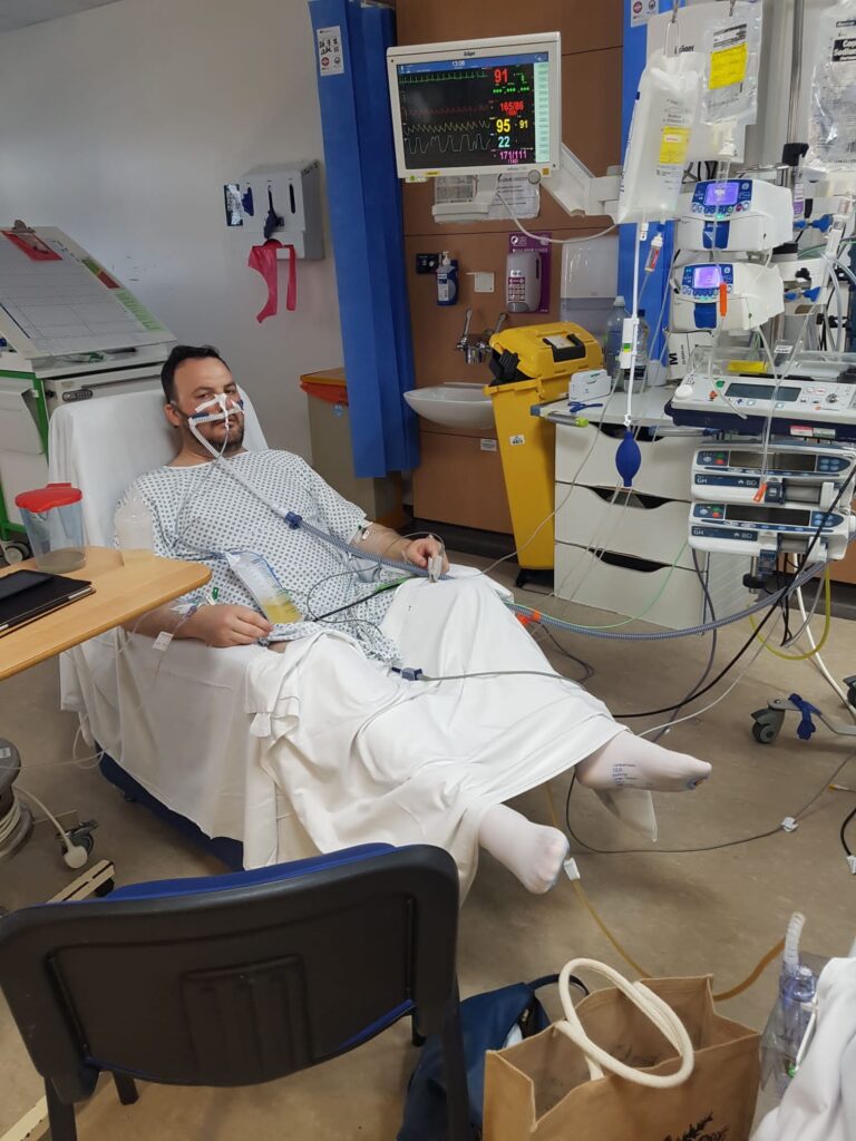 When we arrived, I was admitted into hospital and spent the weekend on the ward. I became much worse on Sunday, and they took me into intensive care. They found a gallstone had dislodged into my bile duct, causing acute pancreatitis. I had also developed pseudocysts (collections of pancreatic fluid).