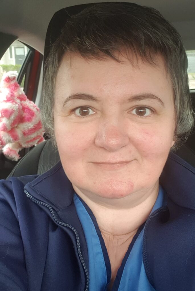 “I’m Emma, I’m 49 years old and live in Aberdeen with my two cats, Coco and Tilly. I also have a son, Kiefer. Five years ago, I decided to do my adult nursing qualifications, when working as a community support worker. I qualified two years ago! I really enjoy my job and a big part of my identity is being a community nurse. In my spare time, I enjoy knitting, meeting up with friends, music and going to concerts.”
