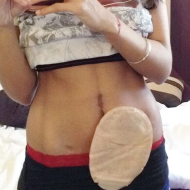 I moved up to the adult clinic just before I was 18 and finally plucked up the courage to have an endoscopy and colonoscopy. I asked for the maximum sedation possible and don’t remember a thing! I’ll never forget the results of this. I often relive it like it just happened yesterday. My consultant told me it was the worst case of Crohn’s he had seen so far in his career. I was put straight onto an immunosuppressant medication, then months after this, started on a biologic, infusion treatment. Unfortunately, none of these worked and at age 19, I was told I would need surgery to form a permanent ileostomy.”