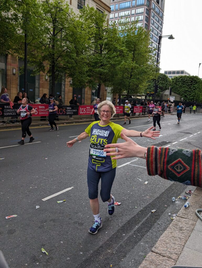“I ran the marathon with one of Sue and her partner Martin’s sons, Hugo, and other family members too. It was a great experience! I finished it, uninjured, and in a shorter time than I’d imagined. The support was phenomenal, from the crowds in general and my family and friends, including the unforgettable atmosphere, music and regular offerings of sweets to see us through. I’ve raised over £3,500 (and counting!), including a collection for Guts UK from the concert of a choir I sing with.”